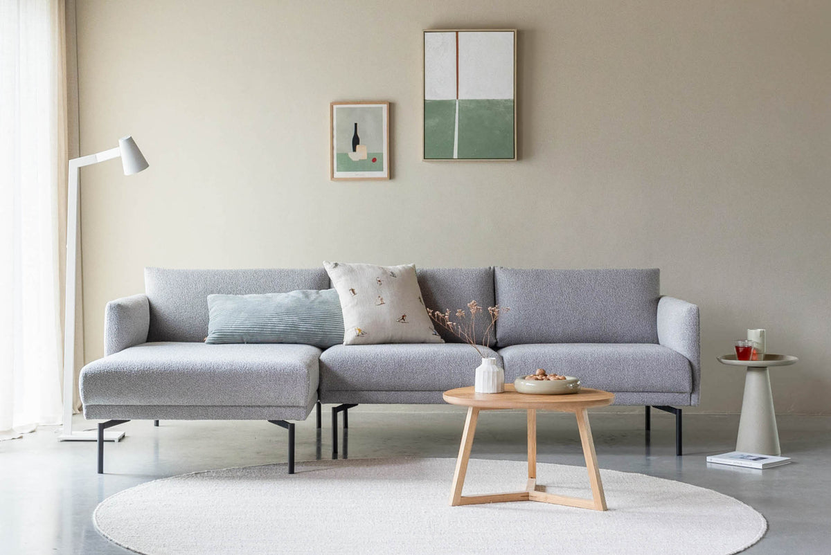 Kiva is gestoffeerd in stof Olli, een grof geweven two-tone. Doordat er twee kleuren garens gebruikt worden, ontstaat er dieptewerking. Er zijn 9 mooie tinten, van de frisse ‘Lemon Cake’ tot een warme ‘Stony Ground’.