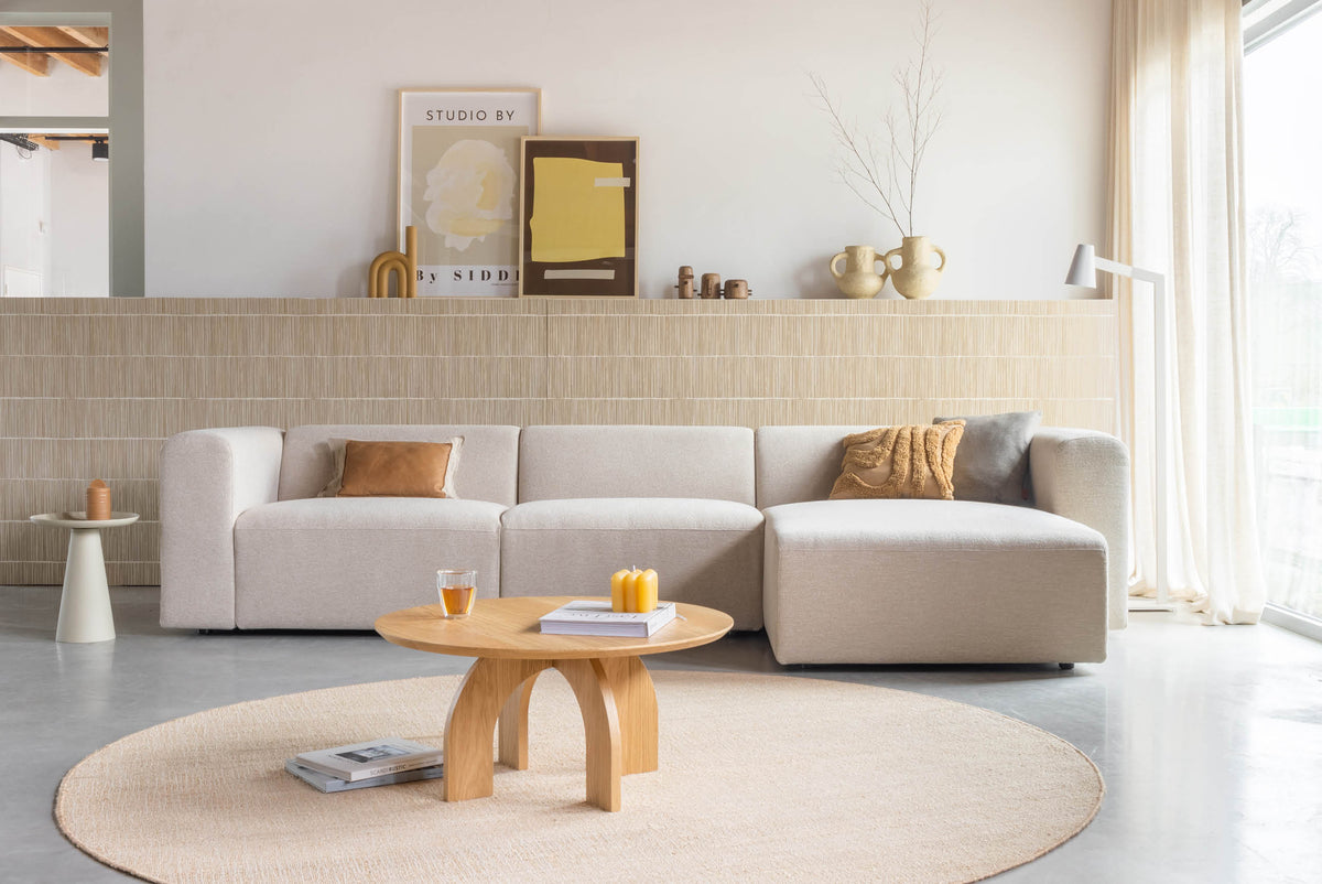 Elementenbank Finn is opgebouwd uit een houten karkas, voorzien van metalen nosag ondervering, daarop een Bonell binnenvering en HR-koudschuim. Dit is een hoogwaardige vulling die in het gebruik zachter wordt. Je zit als het ware op een boxspring.