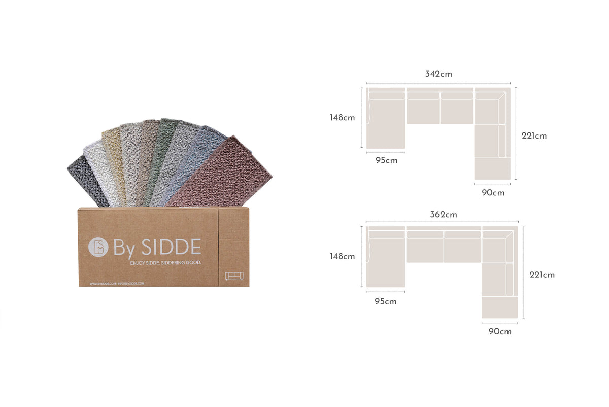 Kiva is gestoffeerd in stof Olli, een grof geweven two-tone. Doordat er twee kleuren garens gebruikt worden, ontstaat er dieptewerking. Er zijn 9 mooie tinten, van de frisse ‘Lemon Cake’ tot een warme ‘Stony Ground’.