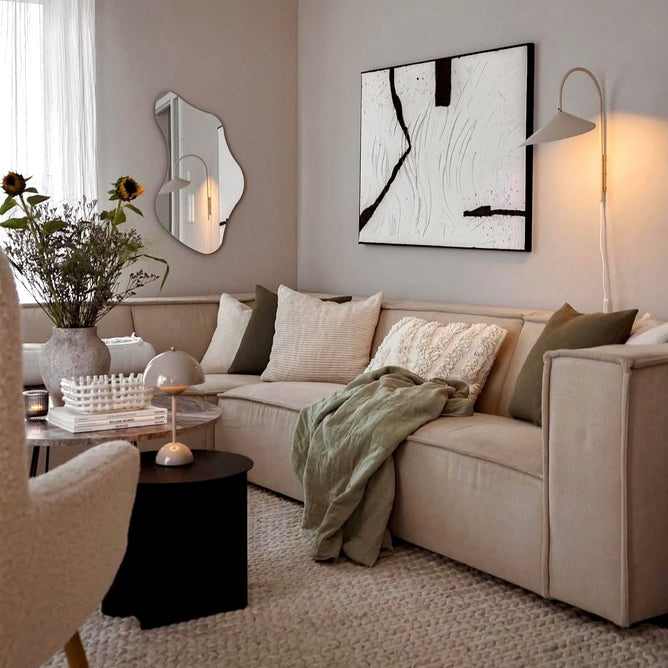 Während des Bestellprozesses wählst du selbst die Lieferwoche, die dir am besten passt. Gegen eine Gebühr von 99 € liefern zwei Profis unseres Logistikpartners Rhenus (DE) oder Cargoe (AT) dein Sofa bis ins Wohnzimmer.