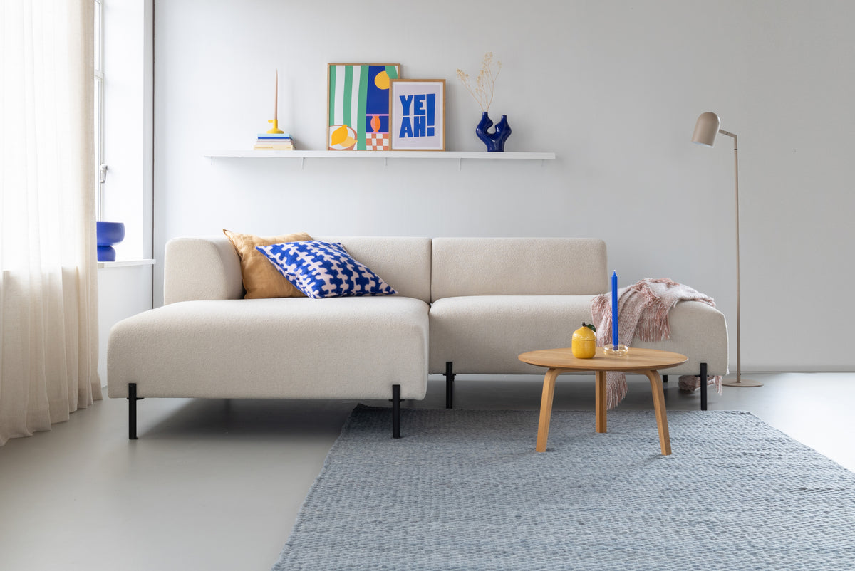 Das modulare Sofa Zev besteht aus einem Holzkorpus, der mit Nosagfedern aus Metall ausgestattet ist. Darauf befindet sich HR-Kaltschaum mit einer Deckschicht aus Memory-Schaum. Dies ist eine hochwertige Füllung, die bei Gebrauch weicher wird. Die oberste Schicht aus Memory-Schaum sorgt dafür, dass sich der Sitz an deinen Körper anpasst. Wenn du aufstehst, kehrt der Memory-Schaum langsam in seine ursprüngliche Form zurück.