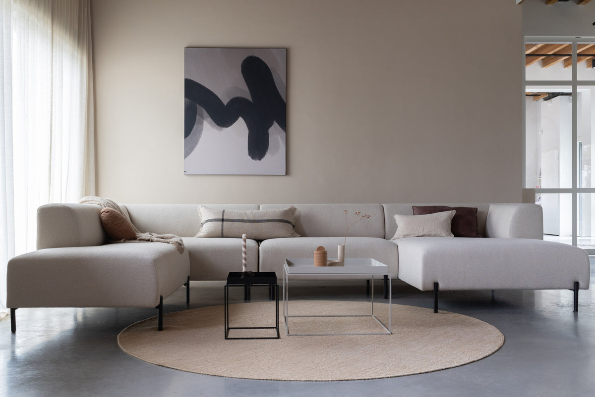 Das modulare Sofa Zev besteht aus einem Holzkorpus, der mit Nosagfedern aus Metall ausgestattet ist. Darauf befindet sich HR-Kaltschaum mit einer Deckschicht aus Memory-Schaum. Dies ist eine hochwertige Füllung, die bei Gebrauch weicher wird. Die oberste Schicht aus Memory-Schaum sorgt dafür, dass sich der Sitz an deinen Körper anpasst. Wenn du aufstehst, kehrt der Memory-Schaum langsam in seine ursprüngliche Form zurück.